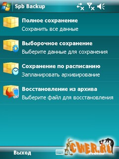 Spb Backup - это программа для резервного копирования данных с вашего Pocket PC. Она создает резервные копии в виде самораспаковывающихся архивов, сжатых и зашифрованных. Такой подход делает процесс восстановления информации очень простым и интуитивно понятным. Предусмотрена функция автоматического сохранения данных по расписанию.