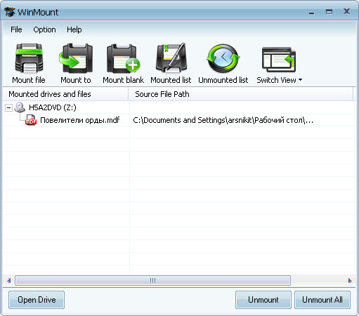 WinMount – новая версия программы для управления архивами и файлами образами. WinMount позволяет создавать ZIP, RAR, ISO и другие архивы и использовать в них файлы, без необходимости непосредственного извлечения. Кроме того, программа поддерживает почти все форматы файлов-образов: ISO, CUE/BIN, CCD, BWT, MDS, CDI, NRG, PDI, B5T и ISZ, и может работать в качестве CD- и DVD-эмулятора. WinMount совместима с Windows Vista, XP, 2003, 2000, NT.
