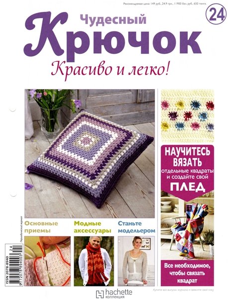 Коллекция «Чудесный крючок. Красиво и легко!» — это простой и доступный способ освоить искусство вязания крючком. С каждым номером вы сможете научиться различным способам вязания крючком, а также познакомитесь с новым узором, выполнение которого представлено пошагово с помощью простых объяснений и фотографий. В каждом выпуске предлагаются прекрасные модели для вас и вашего дома. Откройте в себе талант и познайте радость творчества! Регулярно получая описания простых в исполнении моделей, вы соберете собственную коллекцию.