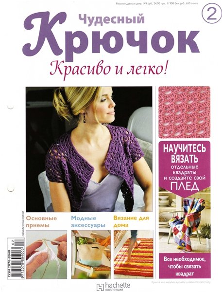 Коллекция «Чудесный крючок. Красиво и легко!» — это простой и доступный способ освоить искусство вязания крючком. С каждым номером вы сможете научиться различным способам вязания крючком, а также познакомитесь с новым узором, выполнение которого представлено пошагово с помощью простых объяснений и фотографий. В каждом выпуске предлагаются прекрасные модели для вас и вашего дома. Откройте в себе талант и познайте радость творчества! Регулярно получая описания простых в исполнении моделей, вы соберете собственную коллекцию.