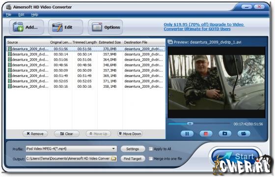 Aimersoft HD Video Converter - поможет вам создать отличные HD видео. Множество удобных и полезных функций программы помогут вам создавать собственные HD видео и показывать эти видеофайлы друзьям. Кроме того, программа предложит вам гораздо больше полезных опций. Хотите смотреть видео в высоком разрешении в любое время? Воспользуйтесь программой Aimersoft HD Video Converter прямо сейчас.