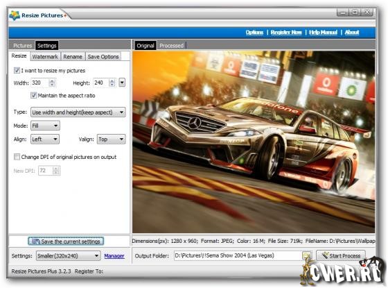 Resize Pictures Plus - простая в использовании программа для изменения размера и формата ваших фотографий в пакетном режиме. Позволяет пользователю в пакетном режиме изменить размер, качество, наложить водяной знак на картинку и конвертировать фотографии в один из форматов таких, как JPG, BMP, PNG, TIF, GIF, PCX и TGA. Прежде всего, программа подойдет для изменения фотографий с вашей фотокамеры, ведь большинство сфотографиованных изображений имеют большие размеры, а данная утилита позволит вам быстро и легко произвести все вышеуказанные операции в пакетном режиме, т.е. вам всего-лишь нужно выбрать фотографии, настроить выходные параметры изображений и нажать кнопку запуска процесса. В результате, вы сможете передать ваши фотографии друзьям, поместить их в блоге или на форуме. Имеет простой и понятный пользовательский интерфейс, поэтому подойдет для большинства пользователей и не вызовет проблем при использовании.