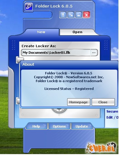Folder lock - очередная версия программы, которая делает ваши файлы скрытыми, неудаляемыми и очень безопасными, сохраняет ваш пароль, даже когда Вы перемещаете файлы в сменные диски из одного PC в другой, это позволяет Вам зашифровать так же, как закрывать доступ к вашим файлам, но и закрыть доступ к вашему PC.