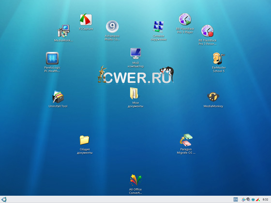 Что-то вроде замены обоям рабочего стола: падающий снег, скапливающийся в сугробы на открытых окошках и внизу экрана. После установки программы на вашем Рабочем столе начнется настоящий снегопад, периодически пронесутся сани с оленями и Санта-Клаусом, а еще чинно пройдет белый медведь. Ну чем не новогодняя сказка?!