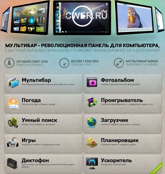 Multibar Ticno позволяет навести порядок на рабочем столе, а также моментально найти нужную информацию на компьютере или в интернете. Организует все используемые программы и документы в удобном и доступном виде. Мультибар умеет все, а тому, что не умеет — скоро научится. В нем есть встроенный планировщик дел, динамические папки и красивый интерфейс, присланный из соседней галактики. Он практически не занимает места, в то же время радует глаз и приятен на ощупь.