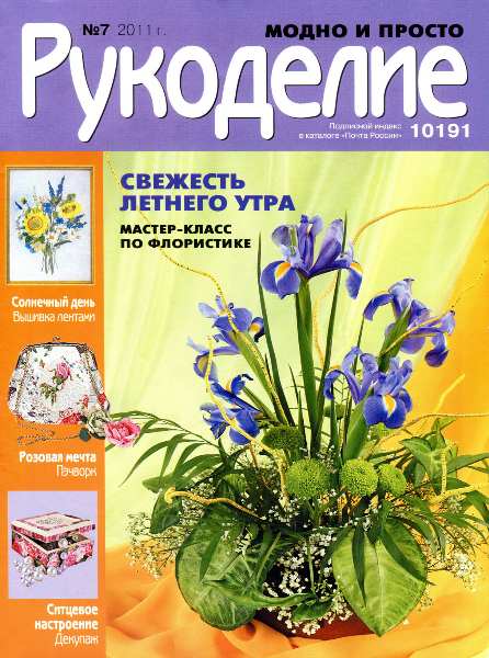 Журнал по различным видам рукоделия: вышивке гладью и крестом, батику, росписи по стеклу, декупажу, текстильной игрушке, бисероплетению, росписи по ткани, валянию (симпатичные игрушки) и др.