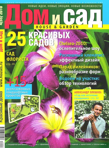 Журнал "Дом и сад" – полноцветное периодическое издание, в котором представлены профессиональные советы и практические рекомендации по планировке сада и уходу за ним, благоустройству и озеленению приусадебного участка, выбору растений для ландшафтного дизайна, а также по использованию инструментов и оборудования для ухода за садом. Много внимания уделяется "водной" теме – прудам, фонтанам и водопадам, а также зимним садам и устройству зеленых уголков в интерьере.