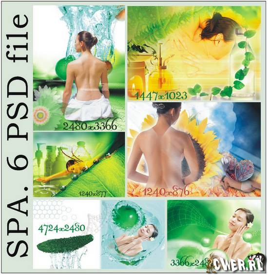 Сборник из 6 фотоколлажей на тему "Красота. Здоровье. SPA" в многослойном PSD файле, слои отключены, размеры разные, качество 300 пк/дюйм