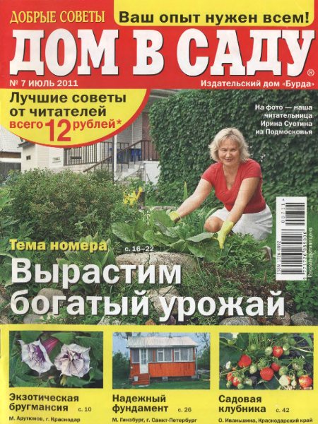 Ежемесячный интерактивный журнал для всех, кому интересно садоводство, огородничество, строительство и ландшафтные работы. Основная часть журнала — письма читателей, в которых они делятся своим опытом выращивания декоративных, садовых и овощных культур, обустройства дачного участка, защиты растений от болезней и вредителей, строительства и украшения дома. В каждом номере — фотоальбом от читателей и портреты лучших цветов для домашней коллекции, советы по использованию лекарственных растений, рецепты дачных блюд, вопросы юристу, забавные истории.