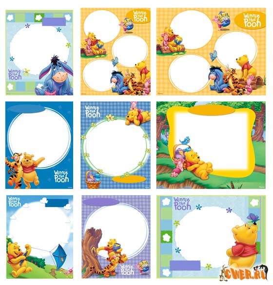 Отличный вариант оформления детских фотографий - рамки с любимым медвежонком Винни и его весёлыми друзьями.