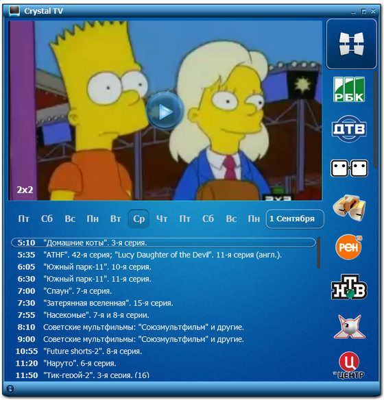 Crystal TV – это самые популярные живые каналы эфирного телевидения, встроенная программа передач, вид матрицы и картинка-в-картинке! А самое главное - Crystal TV автоматически адаптируется к скорости доступа в интернет и всегда показывает наилучшее изображение независимо от того, где Вы находитесь!