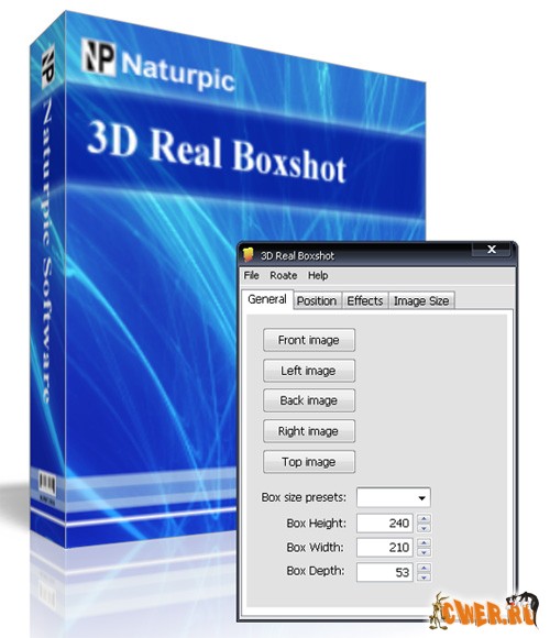Обновленный Naturpic 3D Real Boxshot - незаменимый инструмент для создания качественных коробок для ваших программ. Вы можете с легкостью вращать и увеличивать поле в режиме реального времени, это позволяет сделать ваш эскиз намного лучше. Просто загружайте изображения в программу и у вас получится уникальная и красиво оформленная коробка для вашего продукта. 3D Real Boxshot умеет работать с BMP, GIF, JPG, PNG, TGA, TIF, EMF, WMF и WBMP файлами и умеет сохранять результат в BMP, GIF, JPG, PNG, TGA, TIF, EMF, WMF, WBMP и ICO формат, так же есть возможность сохранения анимации в AVI файл.
