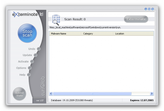 Exterminate It! - это антивирусное и антишпионское решение защитит ваш компьютер, подключенный к Интернету и ноутбук с легкостью и на самой высокой скорости! Данная программа принадлежит к самому последнему поколению сканеров вредоносных программ, которая содержит различные типы обнаружения, включая поиск по сигнатурам и систему поиска, основываясь на поведении. Exterminate It! удаляет вирусы, Трояны, вредоносные программы, шпионские угрозы, рекламные программы, программы дозвона – практически любые типы инфекций, которые могут повредить вашей компьютерной системе!