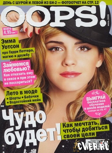 Oops! (Упс) — ежемесячный журнал для стильных девушек, для тех, кто только открывает для себя мир глянцевых женских журналов. Oops! — это новые тенденции моды для молодых красавиц, советы экспертов по косметике и уходу за собой, а также специальные репортажи по самым важным проблемам, какие только могут волновать девушек на пороге взрослой жизни. В каждом номере — интервью с российскими и зарубежными звездами, новости музыки и кино, романтические истории о любви, рекомендации по имиджу от лучших стилистов и увлекательные путешествия. А еще — точный гороскоп на месяц и смешные истории от читателей. Oops! постоянно проводит конкурсы красоты среди читательниц, многие из них с успехом приняли участие в фотосессиях и появились на обложке журнала.