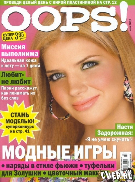 Oops ! — ежемесячный журнал для стильных девушек, для тех, кто только открывает для себя мир глянцевых женских журналов. Oops ! — это новые тенденции моды для молодых красавиц, советы экспертов по косметике и уходу за собой, а также специальные репортажи по самым важным проблемам, какие только могут волновать девушек на пороге взрослой жизни. В каждом номере — интервью с российскими и зарубежными ...