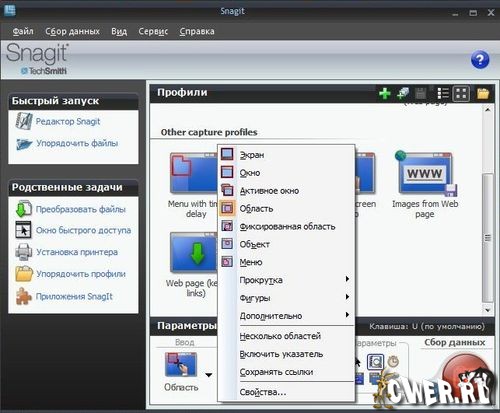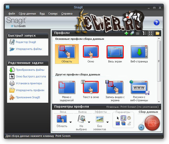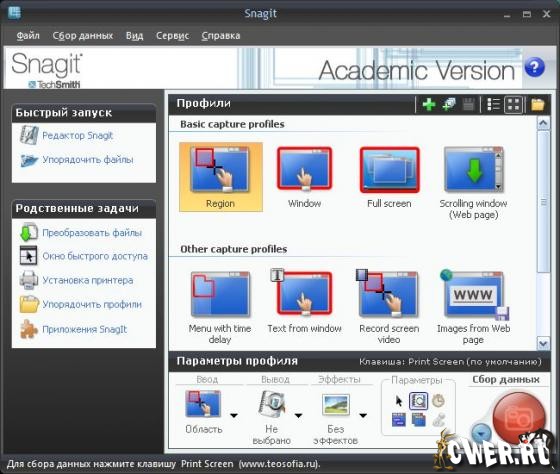 Основное назначение программы - снятие скриншотов с экрана монитора, причем SnagIt умеет делать не только статичные графические "снимки" выбранной области, но и, например, записать в видео то, что происходит на экране, а также захватить картинку из приложений, использующих Direct X, DirectDraw и Direct 3D.