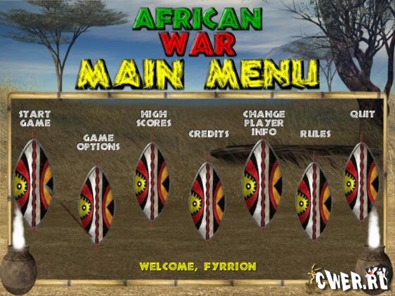 Увлекательная карточная война на фоне потрясающего африканского ландшафта несомненно привлечет ваше внимание ошеломляющей 3D графикой, эффектами и оригинальной музыкой африканских племен. Из четырех режимов игры вы можете выбрать как быструю схватку, так и продолжительные военные действия, которые будут идти до тех пор, пока один из игроков не захватит в плен всех оставшихся воинов. Это война!