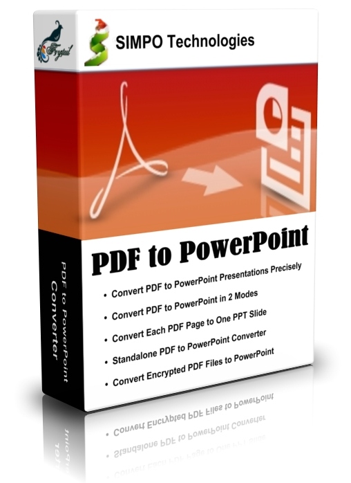 Simpo PDF to PowerPoint Converter - идеальное приложение для конвертации PDF файлов в документы PowerPoint 2003/2007/2010 .ppt или .pptx с высокой скоростью и с сохранением высокого качества. Этот PDF to PowerPoint Converter конвертирует каждую страницу в один ppt слайд, так что вам не придется заново форматировать файл ppt. Создавайте презентации с легкостью!