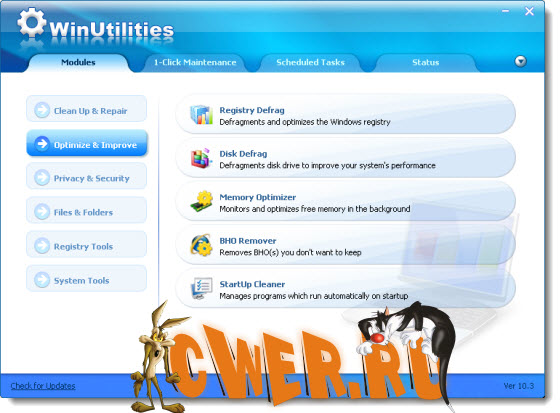 WinUtilities содержит пакет утилит для настройки и оптимизации Вашей операционной системы. Программа позволяет находить и удалять критические неисправности, неправильные ссылки и ключи в реестре, поможет правильно удалить приложения и программы, а также очистит историю интернета, cookies и многое другое. Также в программе есть возможность настроить автозапуск программ и изменять скрытые опции ОС.