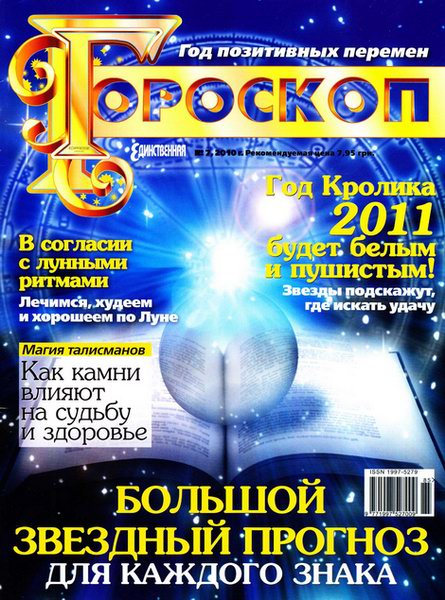 Журнал для женщин, которые сверяют свою жизнь со звездами и любят получать положительные эмоции. Как стать хозяйкой своей судьбы? Звезды Вам советуют. Большой звездный прогноз для каждого знака Зодиака. Год кролика 2011 будет белым и пушистым! Звезды подскажут, где искать удачу.