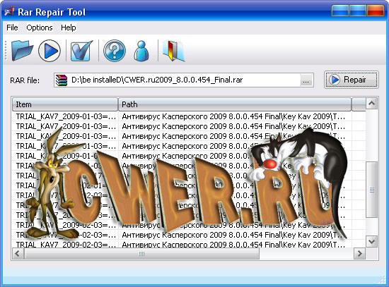 Мощный инструмент, который позволяет Вам восстанавливать поврежденные RAR и SFX архивы. Программа просматривает разрушенные или поврежденные архивы и восстанавливает ваши rar файлы везде, где это возможно. Rar Repair Tool подходит для всех версий архивов SFX и RAR. Независимо от количества файлов, размера, мощный механизм программы гарантирует их быстрое и точное восстановление. Rar Repair Tool имеет удобный интерфейс, который делает восстановление rar легким процессом. Все, что Вам нужно будет сделать, это запустить Rar Repair Tool отметить файлы для восстановления.
