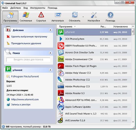 Uninstall Tool - ультра маленькая программа, заменяющая неудобную и тяжеловестную стандартную программу установки и удаления программ Windows. Имеет множество опций, настроек и возможностей, которых нет в стандартном аналоге от Microsoft.