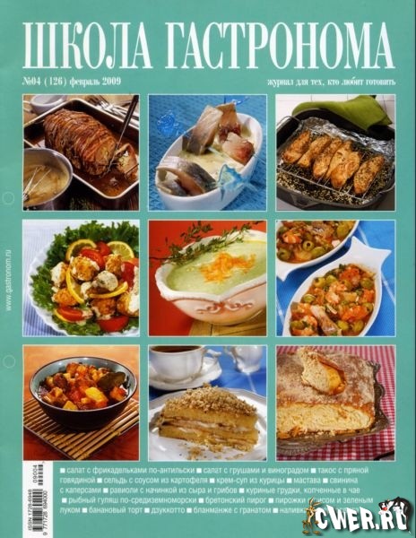 "Школа гастронома" - журнал для тех, кто любит готовить. В каждом номере журнала - кулинарные рецепты с подробнейшим поэтапным описанием приготовления блюда. Каждый шаг на пути к кулинарному шедевру, будь то яичница-глазунья или замысловатый французский соус, иллюстрирован цветными фотографиями. Все рецепты подобраны так, чтобы входящие в них продукты могла позволить себе средняя российская семья.