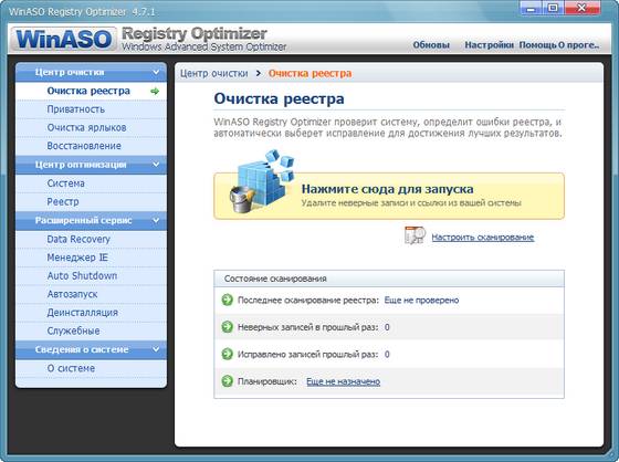 WinASO Registry Optimizer - программа для чистки и восстановления системного реестра Windows. Программа сканирует реестр и удаляет ошибочные или устаревшие записи, оптимизируя работу Windows и предохраняя ее от всевозможных сбоев. Предусматривает проверку реестра по расписанию, дефрагментацию реестра, создание списка ошибок, которые программа должна игнорировать, менеджер автозагрузки, деинсталляцию приложений, очистку диска от временных файлов и файлов интернета. Возможна отмена произведенных изменений из резервной копии.