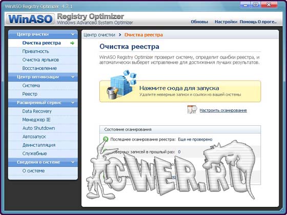 WinASO Registry Optimizer - это продвинутая программа очистки и оптимизации Windows, которая позволяет Вам безопасно очищать и восстанавливать проблем с реестром, сделав несколько щелчков мышью. Удаляя устаревшую информацию и настраивая параметры в реестре Windows, данная программа значительно ускоряет вашу систему. WinASO Registry Optimizer разработан для исправления обычных проблем, таких как: отклоненный доступ к отсутствующим устройствам и дискам, нелегально измененные параметры Internet Explorer и т.д.