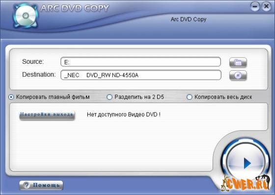Arc DVD Copy - простой и быстрый инструмент для копирования видео DVD в том числе и защищенных. Подойдёт как начинающим пользователям, так и продвинутым. Скопирует DVD-фильм за 20-40 минут! Поддерживает двуслойные диски, возможность редактирования меню, шифрования Ваших проектов и многое, многое другое!