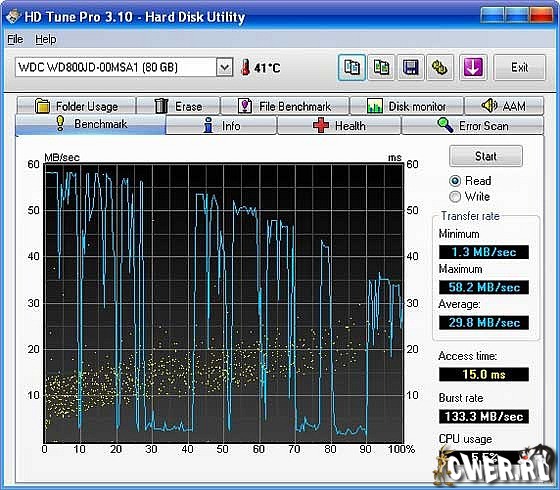 HD Tune - утилита, предназначенная для детального тестирования работоспособности и производительности жестких дисков с различными интерфейсами, а так же карт памяти и flash-дисков.
