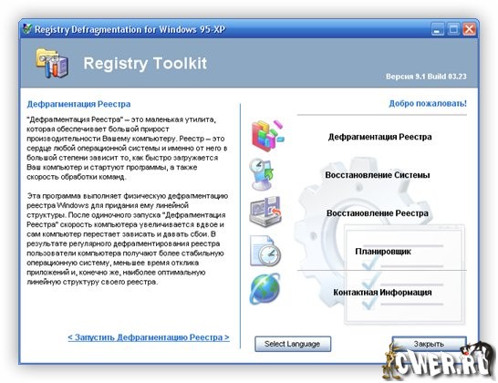 Registry Defragmentation - утилита для дефрагментации системного реестра. Как известно, со временем реестр увеличивается, в нем накапливаются неиспользуемые данные, при этом структура реестра становится далека от оптимальной. Дефрагментация системного реестра позволяет увеличить скорость загрузки Windows и уменьшить время отклика программ. Registry Defragmentation работает практически в автоматическом режиме, позволяя при этом для оптимизации реестра и создания его резервных копий использовать планировщик заданий.