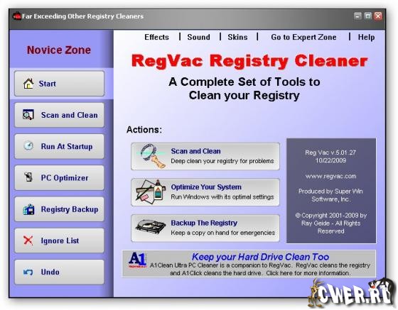 RegVac Registry Cleaner - замечательный набор из 10-и утилит для очистки реестра в системе Windows от "мусора". Несмотря на огромное количество подобных программ в RegVac содержаться некоторые утилиты которых нет больше нигде. Программа позволяет убирать оставшиеся после удаления программ записи в реестре, удалять следы шпионских программ, редактировать меню «Открыть с помощью…» и др. Registry Cleaner оптимизирует реестр таким образом, чтобы Windows запускался в оптимальном состоянии. Кроме того, программа может создавать резервные копии реестра на случай возникновения экстренной ситуации.