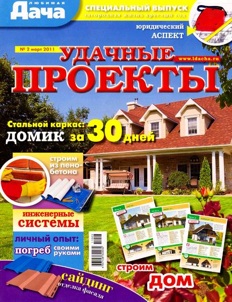 Популярный иллюстрированный журнал о загородной жизни круглый год. Информация на любой вкус: советы и рекомендации о том, как обустроить дачный участок, как построить дом; инструкции для тех, кто стремится сделать дачный ландшафт красивым и уютным; полезные советы о нахождении на садовом участке и за его пределами; информация о том, как выращивать овощи и фрукты на дачном участке и что делать с урожаем...