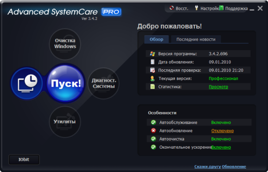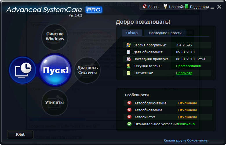 Advanced System Care Pro - профессиональная версия программы, включающая в себя множество модулей для оптимизации, настройки и повышения производительности компьютеров, находящихся под управлением операционными системами Windows.