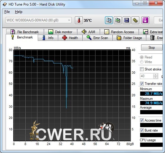 HD Tune Pro - программа для подробного тестирования текущей работоспособности и производительности жестких дисков / SSD с различными интерфейсами (SCSI, SATA или IDE), а также карт памяти и flash-дисков. Скачай на cwer.ws приложение, которое осуществляет замер и наглядно отображает такие параметры накопителей как скорость передачи данных, время чтения, записи и время доступа, уровень загрузки процессора, температуру винчестера, показывает в виде сводной таблицы данные поставляемые S.M.A.R.T, позволяет сканировать жесткие диски и другие накопители на предмет наличия ошибок, выдает информацию о версии firmware, серийном номере, объеме диска и подробности по потребителям полезной площади, его кэше, возможном и активном режимах передачи данных и т д.
