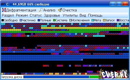 Миниатюрный дефрагментатор, почти ничем не уступающий признанным лидерам - O&O Defrag и Perfect Disk. Работает также быстро, а результат его трудов - полностью дефрагментированный диск. Оптимизируется в том числе и свободное место, дабы избежать быстрой фрагментации в будущем. Благодаря встроенному планировщику дефрагментацию можно автоматизировать. Русский язык есть.