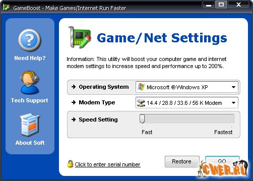 GameBoost - утилита, которая оптимизирует компьютер для достижения максимальной производительности в сетевых играх. Производятся изменения в реестре и системных файлах для повышения производительности памяти, отрисовки изображений, анимации, скорости Интернет-соединения. Все изменения производятся в соответствии с операционной системой и типом Интернет-соединения.