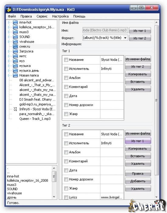 Kid3 - редактор тегов аудиофайлов MP3, OGG/Vorbis, FLAC, MPC, MP4/AAC, MP2, Speex, TrueAudio, WavPack, WMA, AIFF, WAV
