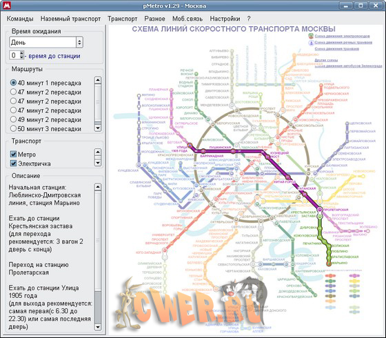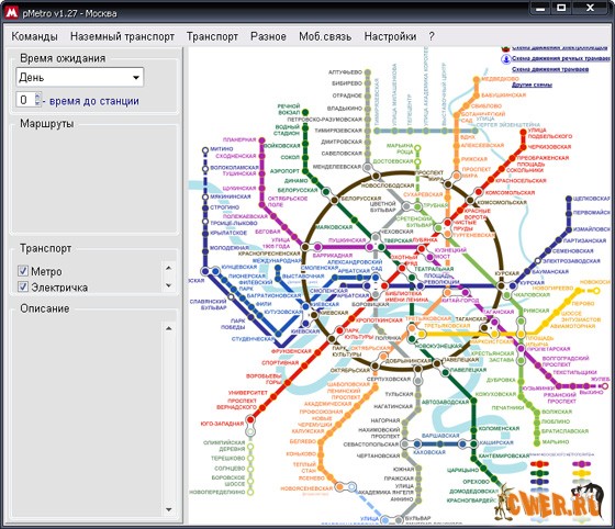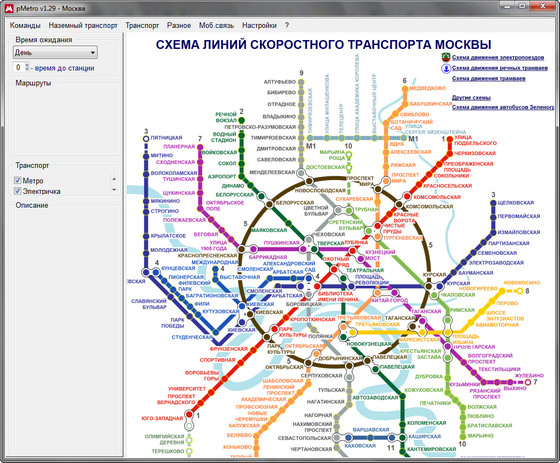 Обновилась программа pMetro - совершенно бесплатный справочник метро Москвы и других городов! Отображает схему метро города (а для некоторых городов и схему электропоездов), позволяет найти кратчайшие пути между станциями, а также описывает, что находится рядом со станциями.