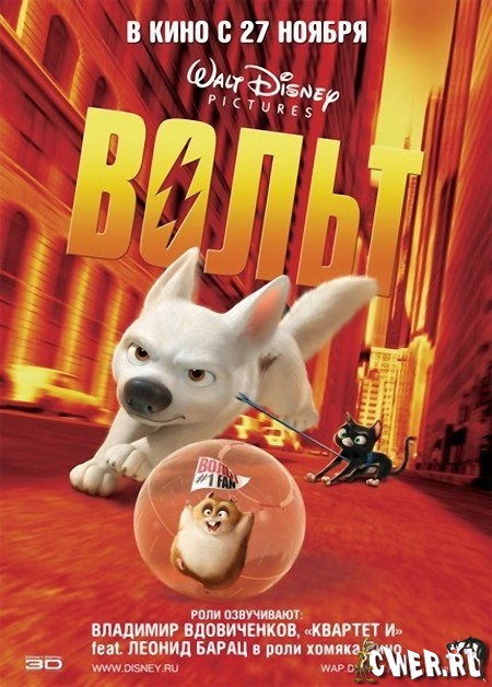 Пес по кличке «Вольт» всю жизнь снимается в телевизионном сериале, где его герой — суперпес — спасает человечество, используя свои необычайные способности. Сам Вольт свято верит в собственную неуязвимость, невероятную силу, и умение летать. Когда же судьба забрасывает его в полный опасностей Большой Город, он все еще думает, что это — лишь очередной эпизод телесериала…