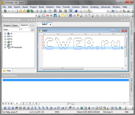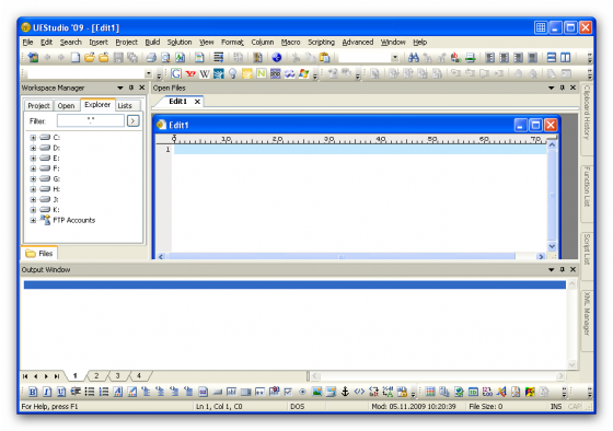 IDM UEStudio - мощная платформа программирования, преемник знаменитого текстового редактора UltraEdit. UEStudio полнофункциональный редактор с поддержкой помимо стандартных функций, дополнительно включает в себя поддрежку свыше 30 популярных компиляторов, интегрированный CVS, многофункциональный конвертор и браузер, с поддержкой работы с FTP-сервером и ещё многое другое. Одна из лучших программ в своем классе. Данную программу можно использовать как текстовый, HTML или шестнадцатеричный редактор. Есть поддержка unicode и подсветка языковых конструкций (C/C , VB, HTML, Java, Perl и т.д.). Имеются широкие возможности по обработке текста: конвертация кодировок, замена букв на строчные или прописные, обрезание хвостовых пробелов и т.д. Может сохранять файлы в Windows или Unix форматах. Можно создавать макрокоманды (как в больших редакторах).