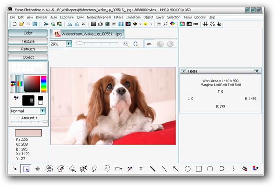 Focus Photoeditor - мощный и легкий в использовании редактор изображений, который вы сможете использовать для обработки и коррекции цифровых фотографий, а также для создания графики для ваших веб-сайтов, дома и офиса. Вы сможете получать фотографии с жесткого диска, другого приложения, а также с помощью сканера или фотокамеры и начинать их немедленную обработку в данном редакторе.