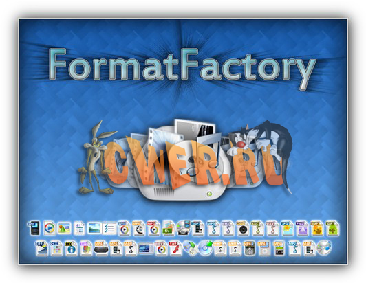 FormatFactory - многофункциональный конвертер различных файлов мультимедиа. Имеет рад дополнительных функций, превращающих FormatFactory в универсальный инструмент для работы с мультимедийными файлами разных форматов. Поддерживается конвертация популярных видеоформатов в MP4, 3GP, MPG, AVI, WMV, FLV, SWF, а также конвертация аудиоформатов в MP3, WMA, MMF, AMR, OGG, M4A, WAV. В FormatFactory есть функция преобразования изображений в форматы JPG, BMP, PNG, TIF, ICO, GIF, PCX, TGA. Среди дополнительных возможностей FormatFactory есть такие, как увеличение и вращение изображений, присвоение им тегов, а также восстановление поврежденных аудио и видеофайлов.