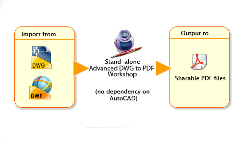 Advanced DWG to PDF Workshop - программа для конвертирования DWG и DXF файлов в векторные PDF файлы без необходимости установки AutoCAD и других дополнительных программ. Страница, вид и формат вашего чертежа полностью сохраняются, что позволяет с легкостью создавать высококачественный PDF документы. В качестве дополнительных функций имеется функция для объединения нескольких файлов в один PDF документ. Для конвертации CAD файлов вам нужно всего-лишь добавить нужные файлы в список программы и запустить процесс преобразования одним нажатием кнопки. Конвертация файлов может происходить в пакетном режиме, что делает ее процесс преобразования быстрым и удобным. Программа поддерживает все версии DWG и DXF формата, включая 2007 и 2008 версии. Обладает простым и легким в использовании пользовательским интерфейсом.
