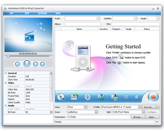Joboshare DVD to iPod Converter - является отличным DVD iPod конвертором, который может преобразовать DVD в Ipod Video, как MPEG-4, H.264/MPEG-4 AVC, MOV и аудио форматы, как MP3, AAC, M4A, AIFF, WAV, воспроизводимые на вашем iPod Classic, iPod Touch, iPod Touch 4, iPod Nano, iPod Nano 5G, iPod Nano 6G, iPod Shuffle, iPod Shuffle 6G, iPhone, iPhone 3G, iPhone 3GS, iPhone 4, iPad с супер качеством звука и изображения. Вы можете также извлекать музыку из ваших любимых DVD фильмов для воспроизведения на вашем IPod, iPhone или IPAD.