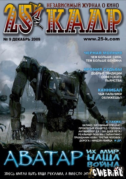 "25-й кадр" - периодический журнал о кино и не только, создан коллективом людей, которые любят смотреть и писать про кино и устали читать чужие журналы. Издание подойдет для ценителей кино, которым надоела много рекламы и много "воды" в тексте. Если для вас Спилберг и Бэй - не вершина кинематографа, то вам будет о чем почитать. Если вершина - узнаете много нового.