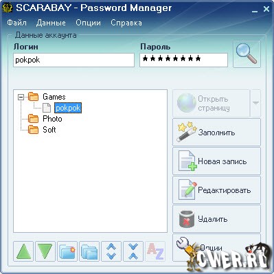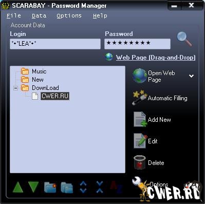 SCARABAY - небольшой и очень удобный хранитель конфиденциальной информации: паролей, логинов, номеров кредитных карт, серийных номеров и любых других секретов. Имеет функции автозаполнения для разных браузеров, генерирует пароли и может использоваться на переносных носителях. Лучшего сторожа найти трудно.