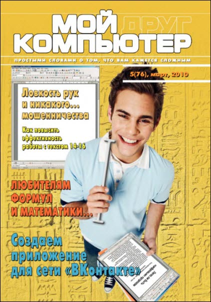 "Мой друг компьютер" - журнал для обычных пользователей компьютера, который рассказывает, как выбрать компьютерную технику, установить и настроить разные программы, модернизировать компьютер с минимальными финансовыми затратами, защитить от вирусов и не стать жертвой хакеров. Девиз журнала: "Простыми словами о том, что вам кажется сложным!"