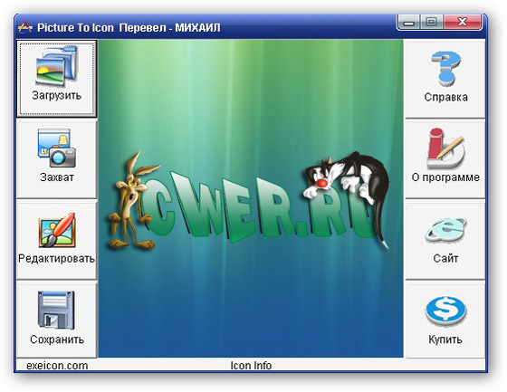 Picture To Icon - программа конвертирующая BMP, JPEG, GIF, CUR, WMF изображение или часть экрана в иконку. Утилита способна выдирать понравившиеся иконки из ресурсов (exe, dll, ocx), есть возможность упаковывать несколько иконов в один файл, менять размер иконок от 1x1 до 240x240 пикселей. Если захотеть можно поменять все иконки Windows на самодельные из ваших любимых картинок или снимков цифровой камеры.